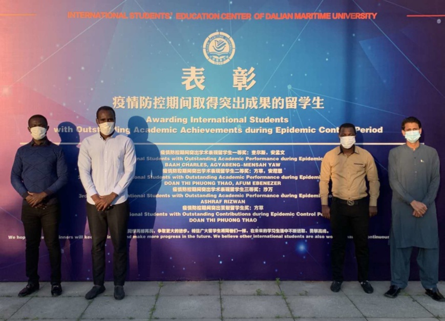 Dalian Maritime University in Dalian, Liaoning province, awards international students with outstanding academic achievements during epidemic control period. (Photo/Courtesy of Dalian Maritime University)