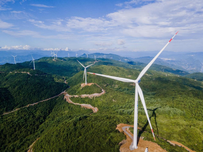 Photo taken on July 23, 2022 shows a wind farm in Wushan county, southwest China's Chongqing municipality. (Photo by Wang Changzheng/People's Daily Online)