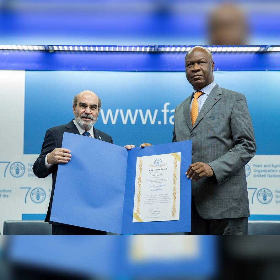 Le pays vient de réussir à réduire la proportion d’affamés pour la ramener en dessous du seuil des cinq pour cent. En guise de reconnaissance de l’effort mondial pour éradiquer la faim, le Cameroun, à travers son ministre de l’Agriculture et du Développement Rural Essimi Menye a reçu lundi, au siège de la FAO, une reconnaissance qui fait la fierté de l’ensemble du pays.
