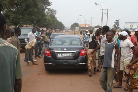 Plusieurs civils mécontents ont tentés de s'en prendre à des véhicules de ministres, escortés par des soldats africains.