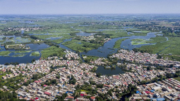 Photo shows the scenery of the newly upgraded Baiyangdian Lake scenic area in Xiong'an New Area, north China's Hebei Province, June 20, 2021. (Photo by Jiao Yunpeng/People's Daily Online)