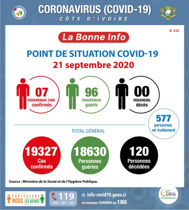 Coronavirus - Côte d'Ivoire : Point de la situation COVID-19 du 21 septembre 2020