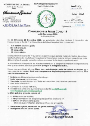 Coronavirus - Djibouti : Point de Presse sur la Situation COVID-19 le 20 décembre 2020