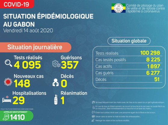 Tests réalisés : 4095 Nouveaux cas : 148 Hospitalisations : 29 Guérisons : 357 Décés : 0 Réanimation : 1