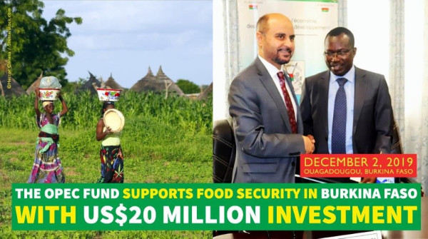 Le Directeur-général du Fonds OPEP pour le développement international (le Fonds OPEP), Dr Abdulhamid Alkhalifa, a signé un prêt au développement de 20 millions de dollars des États-Unis pour aider à financer le Projet d'appui à la promotion des filières agricoles (PAPFA) du Burkina Faso.