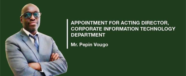 La Haute Direction a le plaisir d’annoncer la nomination de M. Pepin Vougo comme Directeur par intérim du Département des Technologies de l’Information de l’Entreprise à compter du 1er avril 2020.