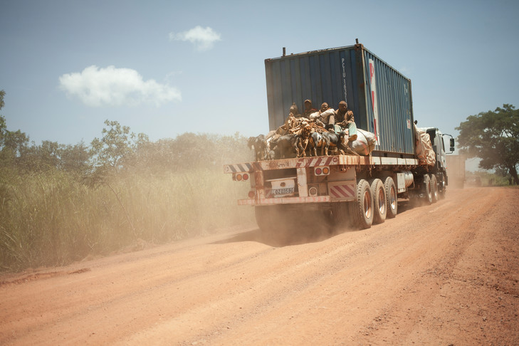 Sur la route entre Douala et Bangui, en Centrafrique, le 15 octobre. AFP PHOTO / FLORENT VERGNES / FLORENT VERGNES/AFP