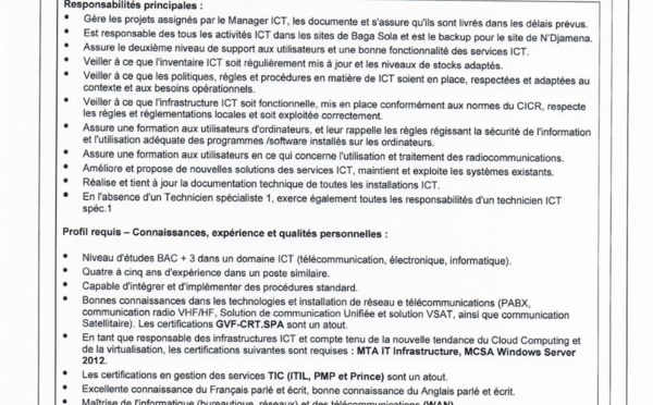 Tchad : La Délégation du CICR recrute un(e) "ICT Spécialiste 2" (H/F) basé(e) à Baga Sola