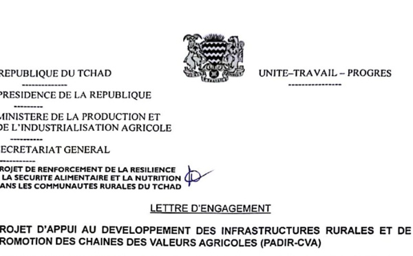 Tchad : Lettre d'engagement pour un nouveau Projet d'Appui au Développement des Infrastructures Rurales (PADIR-CVA)