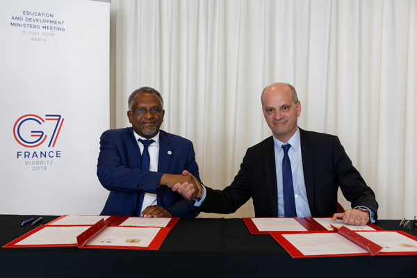 La réunion de Paris des ministres de l’Éducation et du Développement du G7, tenue le vendredi 5 juillet 2019, a associé leurs homologues du G5 Sahel (Mauritanie, Mali, Tchad, Niger, Burkina Faso). Les pays du G7 ont annoncé vouloir mettre l’accent sur l’éducation des jeunes filles et la formation professionnelle dans les pays les moins développés, notamment au Sahel.