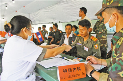 A medical team sent by China is offering volunteer treatment in a city of northern Laos for local public in July, 2017. (Photo by Zhang Zhiwen from People’s Daily)